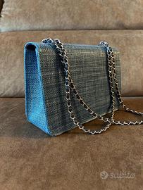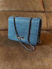 Modello caratterizzato da una bellissima tracolla a catena regolabile, da portare a spalla con due manici oppure tutta lunga