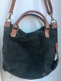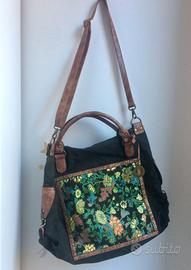 Capiente borsa Chantal Firenze originale, tessuto canvas grigio scuro, disegno floreale con piccole borchie. Tracolla regolabile e amovibile.