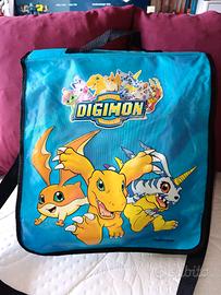 Vendo borsa/cartella dei Digimon, La borsa presenta una stampa frontale vivida con i personaggi iconici: Agumon, Gabumon e Patamon. Condizioni: Ottime condizioni (come da foto). Dettagli: Colore azzurro brillante, chiusura con cerniera perfettamente funzionante e tracolla nera regolabile