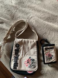 Per chi ama il vintage, borsina a tracolla in tela uguale al portafoglio. Tutto nuovo. Brand MAKAKO