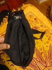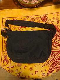 Originale, in ottime condizioni è solo presente una piccola cuciture su una fibbia come visibile in foto. misure 45 x 35 circa. Colore blu scuro.