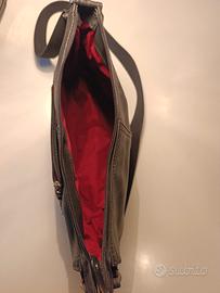 borsa tracolla nera con tasca esterna con zip. interno in tessuto rosso
