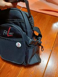Vendo borsa tracolla Fitline NUOVA con spilla. Composta da tre tasche a cerniera, una tasca laterale porta borraccia (no inclusa).