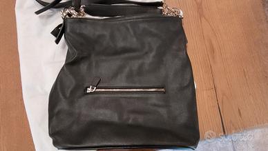 Borsa Guess in pelle nera, con dettagli in metallo argentato e zip frontale. - Logo Guess inciso sul davanti. - Dettagli con logo Guess sui manici. - Sacca antipolvere Guess inclusa. spaziosa, morbida, maneggevole, ricca di tasche esterne con zip per avere a portata di mano gli oggetti indispensabili come cellulare e chiavi.