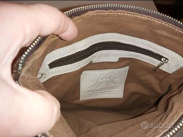 borsa tracolla originale LA MARTINA grande, può contenere un grande tablet, da uomo ma io l'ho presa per me, davanti e dietro è in materiali diversi ed i colori sono neutri, molto bella, rifinita molto bene come sempre dalla casa madre sono oggetti di alta qualità, pagata 250 in saldo, svendo perché non la uso piu
