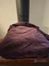• Materiale: La borsa è realizzata principalmente in velluto, con un lembo superiore viola/bordeaux e un corpo principale blu petrolio o verde pavone.