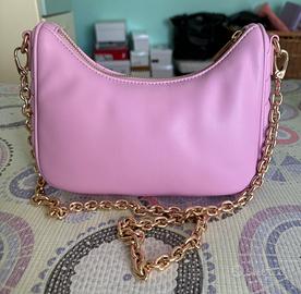Borsa tracolla liu jo , rosa, con catena oro da isate per la tracolla e tracolla di tessuto con attaccato porta monete.