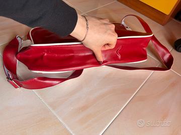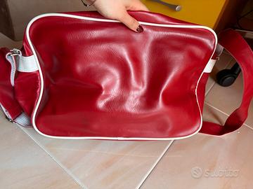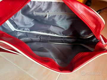 Vendo borsa a tracolla capiente in stile vintage/retrò con grafica Union Jack (bandiera inglese) e scritte "London". Un classico intramontabile, ideale per chi ama lo stile British e cerca una borsa robusta e di carattere. Caratteristiche del prodotto: • Design: Grafica frontale d’impatto con bandiera del Regno Unito su fondo rosso. Profilo bianco a contrasto. • Materiale: Similpelle (ecopelle) lucida, resistente e facile da pulire con un panno umido. • Interno: Ampio scomparto principale foderato in tessuto grigio, dotato di una tasca interna con zip per riporre in sicurezza chiavi, portafoglio o smartphone. • Dimensioni: Molto spaziosa, adatta come borsa da weekend, borsa sportiva o per l'università (contiene comodamente libri e documenti A4). • Portabilità: Tracolla regolabile in similpelle coordinata per il massimo comfort. Stato del prodotto: In ottime condizioni generali. La struttura è integra, le cerniere scorrono perfettamente e l'interno è pulito.