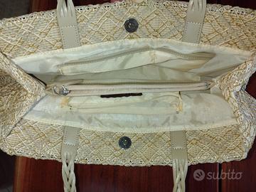 Nuovissima Borsa donna tracolla in nylon e tessuto intrecciata con manico e chiusura a clip e taschino interno con suo sacchetto
