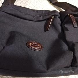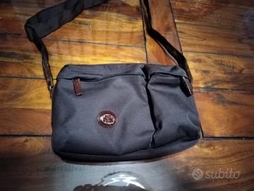 Vendo borsa tracolla regolabile The Bridge originale marrone in tessuto, nuova mai usata. Molto capiente e comoda. Misure: larghezza cm 30 circa, lunghezza cm 20 circa. Ha 2 tasche anteriori con cerniera una grande ( alta cm 15 larga cm 19 circa) la piccola lunga 15 cm, larga 11 cm. Una posteriore lunga e larga per tutta la borsa è infine una interna. La borsa è nuova mai usata.