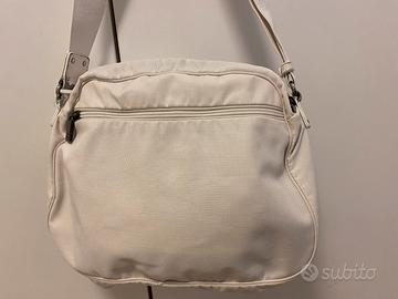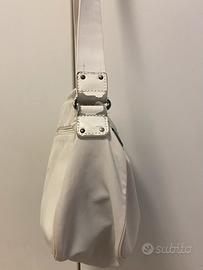 Borsa bianca MD 20, usata vedi manici. II resto a posto tessuto non segnato. Interno pulito. Dotata di tasche esterne ed interne. Ben capiente. Tracolla allungabile. Misure 27 x 25 x 13.