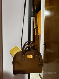 Borsa originale Michael Kors a mano/spalla in pelle saffiano color cognac.