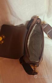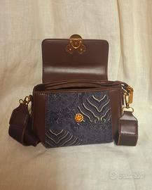 Elegante borsa a tracolla con un adorabile dettaglio a forma di Mickey Mouse. - Chiusura a patta. - Tracolla regolabile. - Finiture dorate. - Tessuto decorato sul fondo.