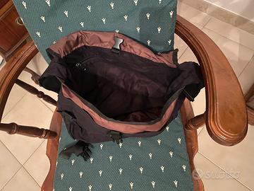 Borsa a tracolla mRca Napapijri nera con interno marrone con due ganci nella chiusura frontale. Ben tenuta senza rotture, strappi o parti logore. Grande capienza, anche computer e libri.