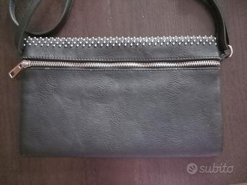 Borsa con tracolla regolabile colore nero, con borchiette, marchio OVS. Usata ma in buone condizioni. Chiusura con zip.