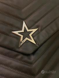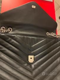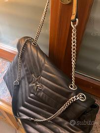 Borsa nera con manici a tracolla e supporto in pelle nera. Molto ben tenuta. Tasca interna con cerniera. Chiusura centrale con gancio perfettamente funzionante