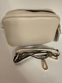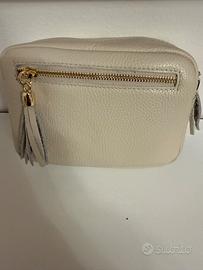 Vendo borsa a tracolla in vera pelle colore panna mai usata