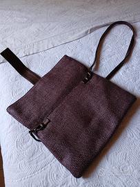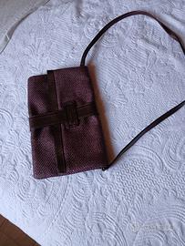 borsa tracolla a bustina color amaranto/glace in pelle intrecciata. Tascina interna e chiusura a calamita.