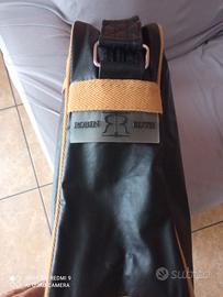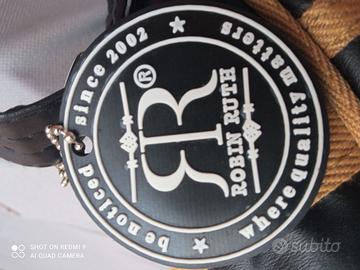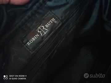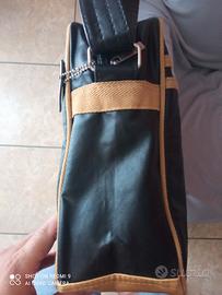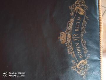 Vendo questa Bellissima borsa a tracolla del marchio Robin Ruth, tracolla vintage unisex per uomo e donna, firmata da Robin Ruth, con scritta Barcellona. Colore nera con bordature e rifiniture di colore oro, non giallo. Esteticamente perfetta, non ha scuciture o rotture, tracolla regolabile, cerniera perfetta, internamente una tasca con cerniera ed altri 2 taschini. Nelle foto, si evidenziano le rifiniture di questa particolare borsa, con misure di 38 x 28 x 8 cm misurati dalle estremità.