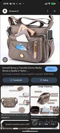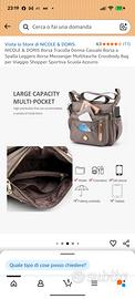 Questa è una borsa a tracolla in nylon impermeabile di colore grigio, caratterizzata da molteplici tasche con cerniera e un design casual adatto all'uso quotidiano.se siete a Roma è consigliabile il ritiro per scegliere tra vasta gamma