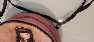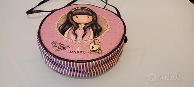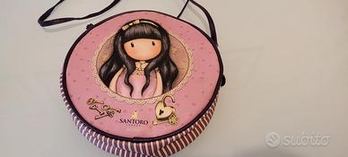 Bellissima borsa a tracolla rotonda con stampa di una bambina su entrambi i lati.
