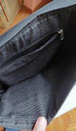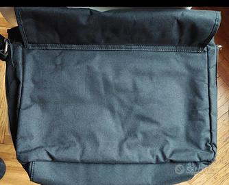 Si tratta di una borsa a tracolla stile "messenger" o "courier bag", spesso utilizzata per trasportare laptop, documenti, libri universitari , altro. Dimensioni cm 37 x 33 ca