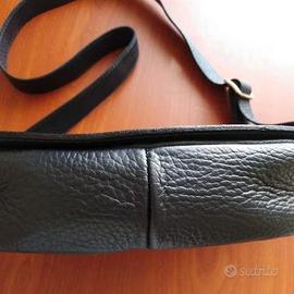 Borsa tracolla Tramontano, in pelle martellata nero, lavorazione artigianale a mano, Made in Italy, provvista di cinglia regolabile, fibbia con logo, interno tasche, di cui una con zip. Misure altezza 23 cm, larghezza 26 cm, profondità 6 cm. Acquistata ma mai usata, provvista di sacca originale.