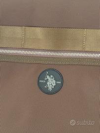 Logo U.S. Polo Assn. in gomma, cerniere robuste e tracolla regolabile.