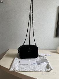 All'interno una piccola tasca a libro. Misure lunghezza 19/20 cm altezza 14/15 cm profondità circa 7 cm. Misure prese con un metro da sarta quindi non precise al millimetro. La borsa NON HA LA SCATOLA ORIGINALE MA BASTBAG all'interno ci sono 2 buste 1 con scritto l'articolo della borsa (articolo visibile all'interno della tasca a libro)