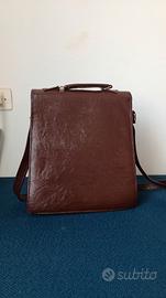 Elegante borsa in pelle sintetica a tracolla da uomo in similpelle marrone, stile classico/vintage. Dotata di manico superiore e tracolla regolabile per un utilizzo comodo sia a mano che a spalla. All'interno è diviso in 2 comparti e ha una tasca con cerniera per mettere penne, documenti ecc. PER MAGGIORI INFO SCRIVIMI