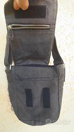 Se avete bisogno di una piccola borsa a tracolla capiente, da portare in viaggio questa fa il caso vostro, in grigio scuro, di tessuto lavabile, 100%corone, con due tasche com chiusura a cerniera,