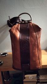altezza cm.36, larghezza cm.36, larghezza base cm.23, tracolla doppia cm.75, due tasche interne con lampo piu una tasca esterna , fodera cotone scozzese, usata pochissimo con piccoli segni visibili, cuoio bicolor ,molto robusta.