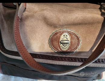 vendo per inutilizzo borsa tracolla/ cartella con impugnatura in pelle scamosciata e raso trapuntato, tasche interne.