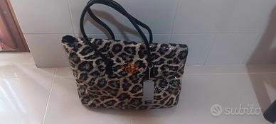 Vendo stupenda borsa con audace stampa animalier (leopardata) in bianco e nero. Un accessorio versatile e grintoso, nuova con cartellino ancora attaccato,