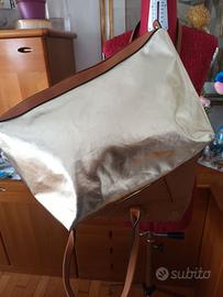 borsa estiva traforata marrone interno oro con borsello removibile oro.