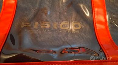 Borsa trasparente firmata FISICO – Cristina Ferrari, dal design moderno e luminoso. Realizzata in PVC rigido trasparente con profili e manici arancioni. Dettagli curati come il ciondolo dorato applicato al manico.