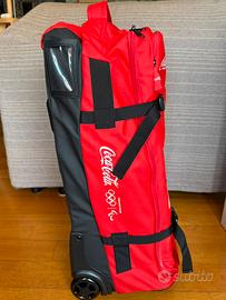Borsa trolley Coca Cola olimpiadi Milano Cortina 2026, nuova mai usata, completa di custodia in tnt. Manico estraibile, ruote, diverse tasche e scomparti. Misure come da foto. Spedizione disponibile.