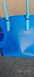 borsa a tracolla o spalla di Trussardi colore blu elettrico e manici azzurro con portachiavi charm trussardi torato tasche interne misura grande usata ma ben tenuta