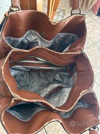 Borsa Trussardi Jeans marrone con segni di usura. Tracolla/mano.