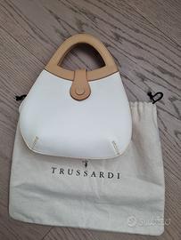 Borsa a mano Trussardi originale in pelle col. bianco e parti in vacchetta, interno foderato con tasca, dotata di dustbag originale, condizioni ottime, misure 19x18x9