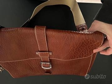 Borsa uomo Trussardi. Mai utilizzata, da oltre dieci anni in armadio dentro la custodia in tela originale. Non ricordo il tipo di pelle di cui è fatta. Misure 40x33x10. La custodia in tela è un po' impolverata e rovinata. La borsa è in ottime condizioni non essendo mai stata utilizzata.