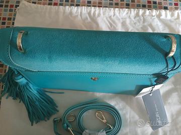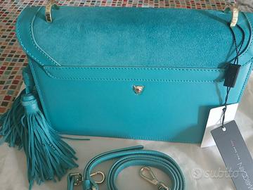 Borsa MARCCAIN turchese, con tracolla, con etichetta e sacchetto in tessuto per conservarla, molto bella, nuova, mai usata, in camoscio turchese