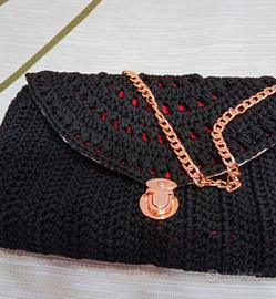 Borsa a uncinetto,fatta a mano , internamente foderata con catena e chiusura colore oro.