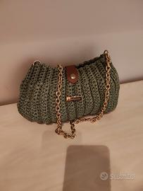 borsa realizzata a mano colore verde salvia con catenella