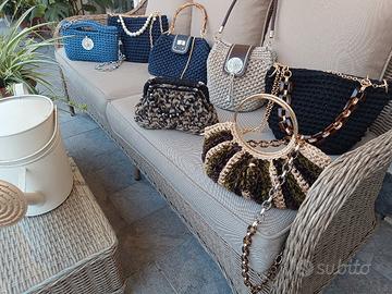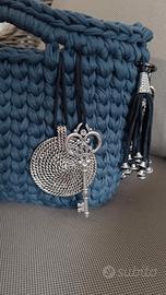 Borsa realizzata interamente a mano all'uncinetto con charms argento