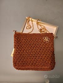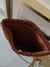 Borsa uncinetto fatta a mano con cordino color ruggine lamé. Interno foderato, chiusura con bottone magnetico e tracolla in metallo regolabile. Guarda il mio profilo per altri articoli di questo genere 🤩