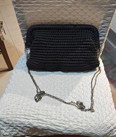 borsa fatta a mano con lavorazione uncinetto color marrone