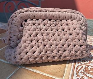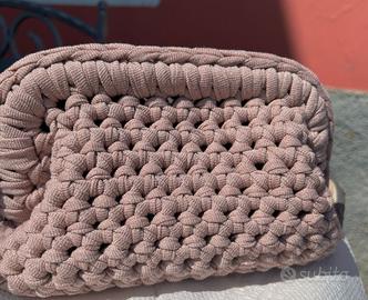 Borsa uncinetto rosa gold brillantinata. Clutch bag Lunghezza base 24 cm, Altezza 15 cm, Molla da 20 cm. Fatta a mano.