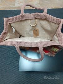 Borsa uncinetto in filato di cotone , interamente fatta a mano. Interno in juta, dimensioni 42x34x17 cm. Nuova , perfette come da foto
