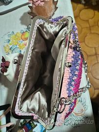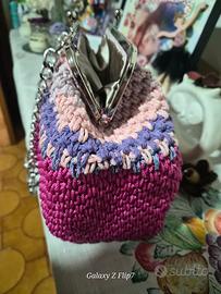 borsa fatta a mano all uncinetto, ha il manico di catena, internamente è foderata ...